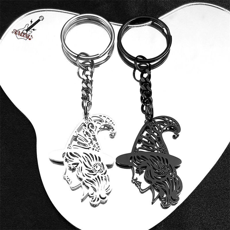 Witchcraft Magic Girl Witch Hat Key Chain for Women Men Stainless Steel Black Co