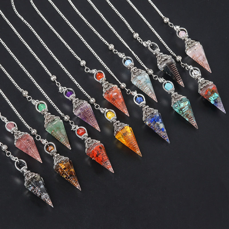 7 Chakra Crystal Pendulum - Natural Stone Divination & Dowsing Pendant, Antique