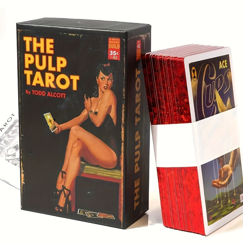 Paper Pulp Tarot Golden Border Hardcover 78 Cards and Pamphlet Game Guide